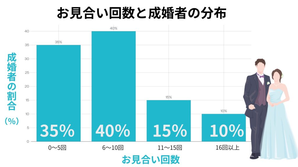 むしろ成婚者の多くは、お見合い回数が「1〜10回」程度の中で成婚相手に出会っており、“数を打ち続けるより、1件1件の質を高める”ことが鍵だとデータが示しています。